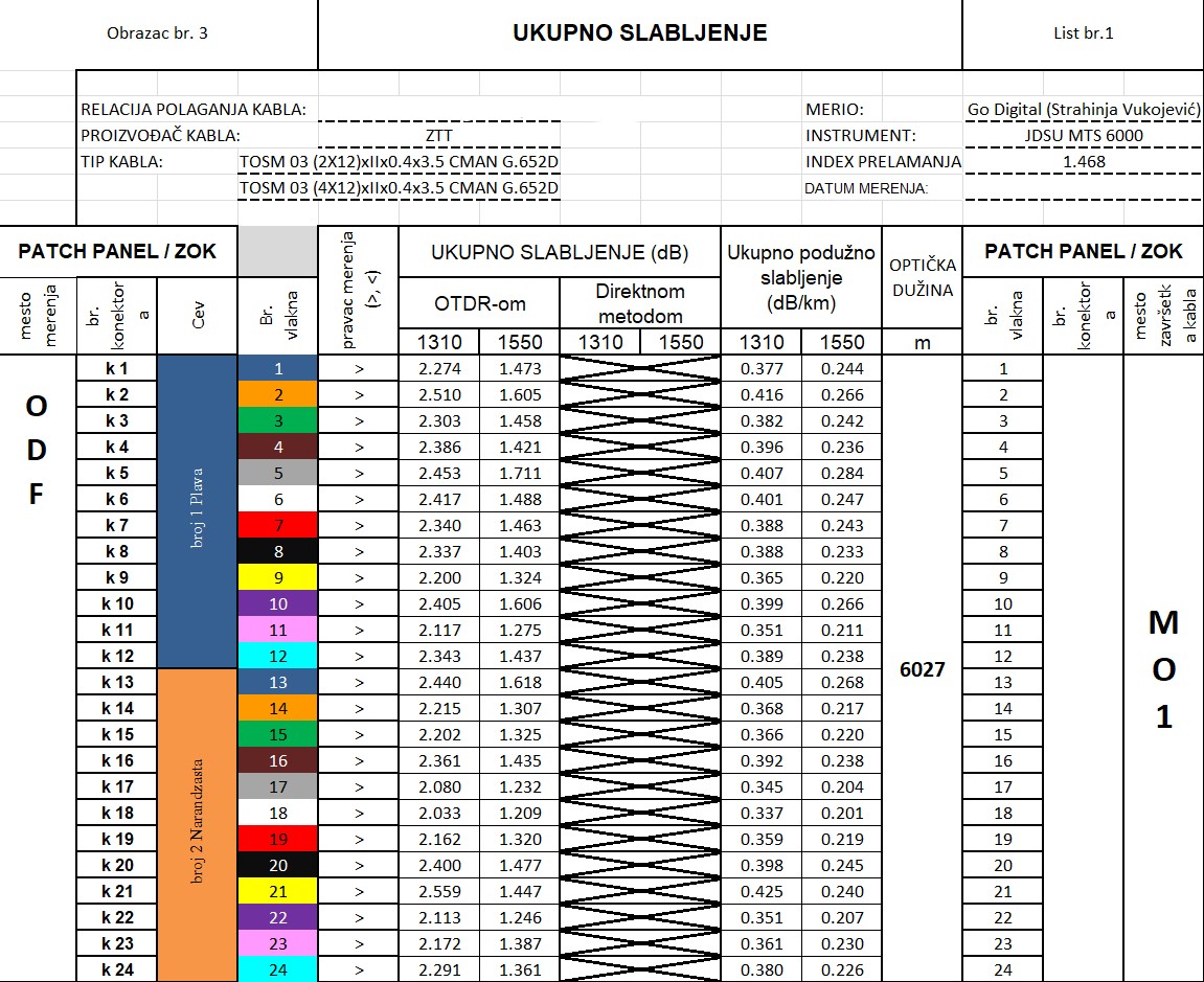- Montiranje završnih optičkih kutija (ZOK), spratnih kutija, ODO ormara i “Patch” panela.